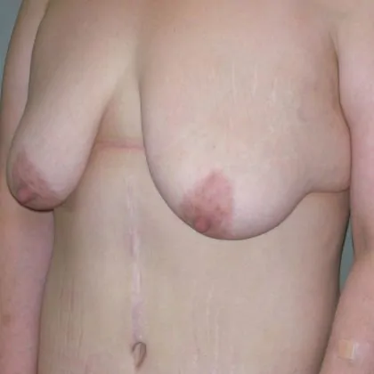 This is a 51-year-old female, weighing 172 and is 5′ 6″ in height. She had undergone a vertical banded gastroplasty 5 years prior. 2007 She underwent a belt lipectomy with vertical hernia repair. 2008 She underwent a breast lift using the SPAIR technique. 2012 She underwent a breast augmentation with Allergan Style 68 HP Natrelle Saline 550cc filled to 600.