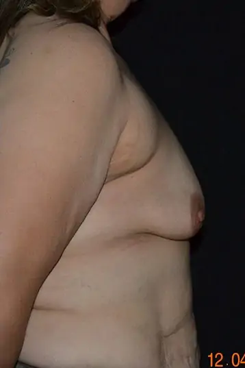 This 48 year old lady from San Antonio had lost a massive amount of weight with diet and exercise. Like most massive weight loss (MWL) patients, she was a real challenge. Although she was wearing a 36A bra, her 2 breasts were 2 different cup sizes. She desired to have breasts as large as she did before her weight loss. Due to the amount of droop, Dr. Koneru chose a dual plane placement of her implants. The implants were placed behind the muscle and the breast tissue was released from the underlying muscle. To help correct the volume difference he chose 500 cc high profile implants and filled the larger right side to 540cc and the smaller left to 590cc for better balance.